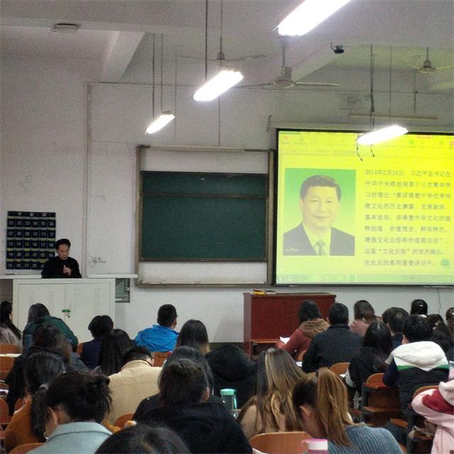 11月6日,学院党委副书记辛文昉在经管楼1104教室上题为《坚持文化自信 实现民族复兴》的党课。bat365官网全体党员参加了党课学习。