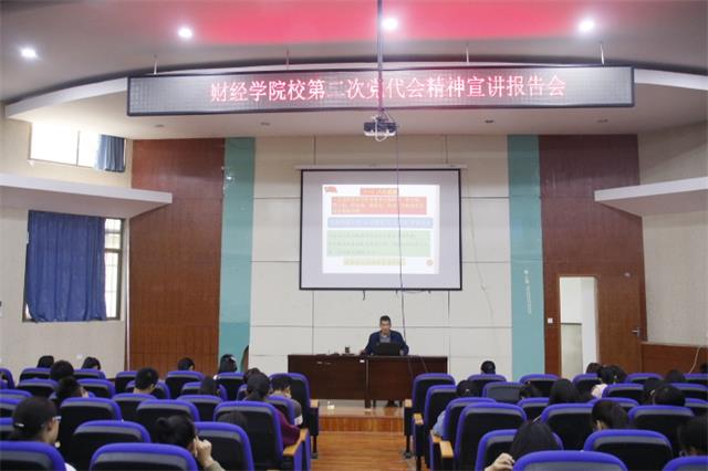 10月16日下午,学院在经管楼圆形报告厅举办学校第二次党代会精神宣讲报告会。院党委书记李桂林就今年6月召开的学校第二次党代会精神进行了宣讲和解读。学院教师和2018级财务管理、金融学两个专业的学生参加了报告会。