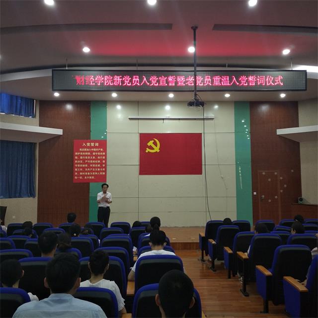 仪式上,与会人员全体起立,奏唱《国际歌》。全体新老党员在领誓人带领下面向鲜红的党旗,庄严宣誓。随后,2016级国贸专业学生姜美如代表全体新党员发言。表示为加入光荣而伟大的党组织而感到骄傲和自豪。她号召全体新党员在学习和生活中严格要求自己,用实际行动践行入党时的铮铮誓言。会计系教工党支部书记江书军代表老党员发言。首先,他提出全体党员要增强党性修养,坚定理想信念,不断完善自我,做一名优秀的共产党员,以更加出色的成绩为党旗增辉。院党委副书记辛文昉向全体党员同志提出了要求。他希望全体党员能够自觉加强理论学习,牢记全心全意为人民服务的宗旨,切实发挥党员的先锋模范作用,用实际行动证明自己无愧于共产党员的光辉称号。