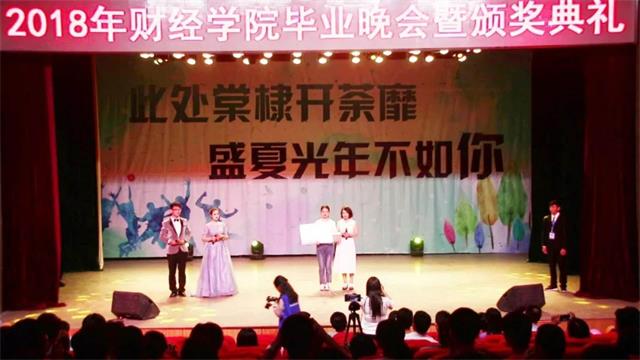 四载时光飞逝过,一朝欢聚话真情。6月3日晚,由bat365在线官方网站平台团委主办,学生会文艺组织部和艺术团承办的2018年毕业晚会暨首届“财经之星”颁奖典礼在校小礼堂隆重举行,此次晚会的主题是“此处棠棣开荼靡,盛夏光年不如你”。学院党委书记李桂林、院长梁丽娟、院党委副书记辛文昉等学院领导和2018届毕业生一同观看了晚会。
